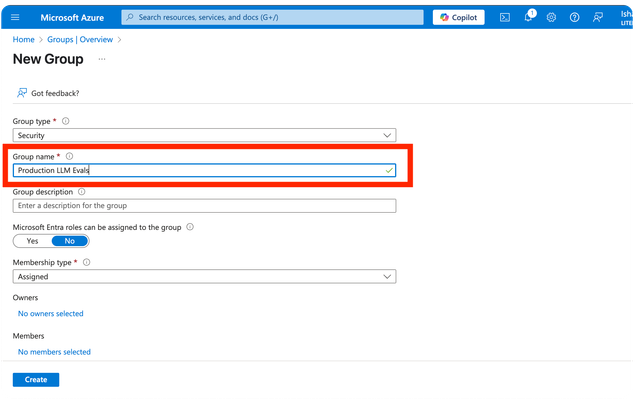 2.1 Navigate to the Production LLM Evals Group in Entra ID​